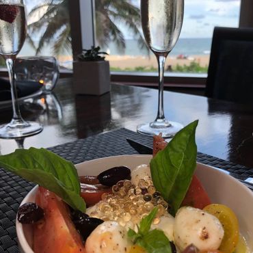 Savor in this casually elegant dining experience in the dining room or overlooking the beach on the outdoor terrace.